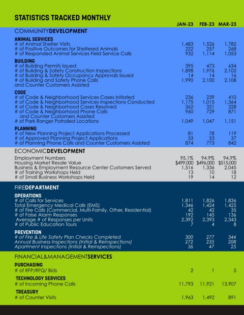 STATISTICS TRACKED MONTHLY