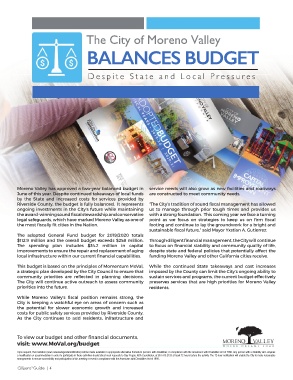 Riverside County, the budget is fully balanced. It represents “The City’s tradition of sound fi scal management has allowed