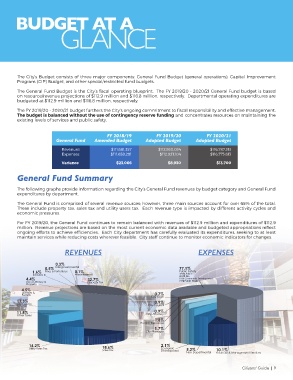 The General Fund Budget is the City’s fi scal operating blueprint. The FY 2019/20 - 2020/21 General Fund budget is based