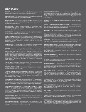 agency. See Government Sponsored Enterprises (GSE). investment decisions based on individual goals, risk tolerance and