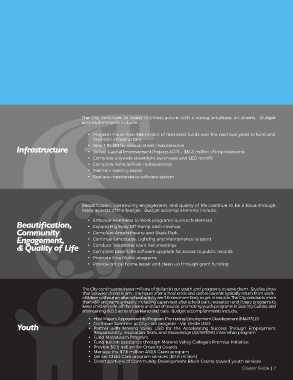 Beautifi cation, community engagement, and quality of life continue to be a focus through