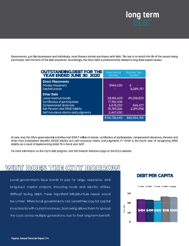 purchased, with the term of the debt payments. Accordingly, the City’s debt is predominantly related to long-lived capital assets.
