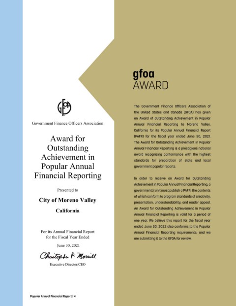 Government Finance Officers Association Annual Financial Reporting to Moreno Valley,