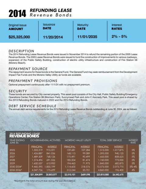 YEAR ENDING GOVERNMENTAL ACTIVITIES MORENO VALLEY UTILITY TOTAL DEBT SERVICE INTEREST YEAR ENDING PRINCIPAL INTEREST INTEREST RATE