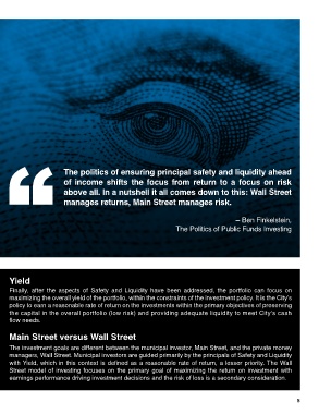 the capital in the overall portfolio (low risk) and providing adequate liquidity to meet City’s cash