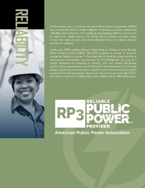 Additionally, APPA certified Moreno Valley Utility as a Platinum Level Reliable